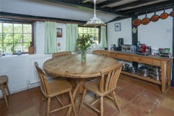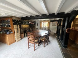 Braggington House is a charming late 16th Century village house with 20th Century alterations and restorations. It is largely built of a timber frame with plastered infill on a rubble plinth beneath a clay tiled roof with squat rubble stacks made of local lias stone. The appearance is quintessentially English with striking black and white elevations. Both internally and externally the property has extensive period features throughout and is well presented. Internal features include exposed wall and ceiling timbers, open fireplaces, exposed lias stonework, leaded light windows and some original doors. The attic floor has an important pigeon loft. The living accommodation, which is well suited to family living, offers potential for further improvement and extends over three floors. The arrangement and measurements of the rooms can be seen on the accompanying floorplans. On the ground floor there are two superb interconnecting reception rooms full of character featuring an inglenook fireplace with stone surround and hearth, French doors onto the garden terrace and high quality fitted cabinets. The dining room which is open to the hall features an impressive inglenook fireplace with wood burning stove, an abundance of exposed timbers and is ideal for formal entertaining. Beyond the drawing room is the study running the full width of the property. The kitchen/breakfast room has fitted cabinets, terracotta tiled floor, stainless steel sink, plumbing for a dishwasher and electric cooker. Walk in pantry. There is a utility with sink, oil fired boiler and door to garden. There is a ground floor WC. A second utility room houses the boiler for the apartment and provides access to the double garage as well as internal access to the apartment above. The first floor provides four bedrooms accessed off a central landing (one being walk through), with the master bedroom having extensive fitted wardrobes and a dedicated en suite shower room. More recently the family bathroom and adjacent WC have been updated. The third floor houses bedroom five and gives access to three attic rooms with potential for further conversion to living space. Adjacent to the main house with its own front door lies the annexe comprising a spacious self contained one bedroom apartment with tall ceilings, exposed timbers and views over farmland to the south west. Outside the gardens and grounds provide a special backdrop to the property and are part moated to the north and west side of the house. Braggington House is approached via an in and out gravel driveway past lawns. Adjacent to the rear elevation is a broad terrace with original well and pergola, ideal for summer dining with steps down to a secluded formal garden mainly laid to lawn with a variety of specimen trees and shrubs with well stocked borders. To one corner is a thatched summer house. Beyond the private formal gardens is a sizeable upper garden set out as a paddock area with greenhouses and stores, vegetable plot, fruit cages and young orchard.